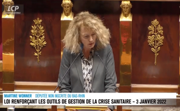 La députée Martine Wonner, qui s'est illustrée en voix de la sagesse depuis des mois face à un gouvernement manifestement autant frappé de folie furieuse que d'incompétence, est intervenue à l'assemblée dans le cadre des débats sur le tyrannique passe vaccinal pour relever en place un certain nombre de vérités dérangeantes, notamment sur l'inutilité de celui-ci face à la vague Omicron.