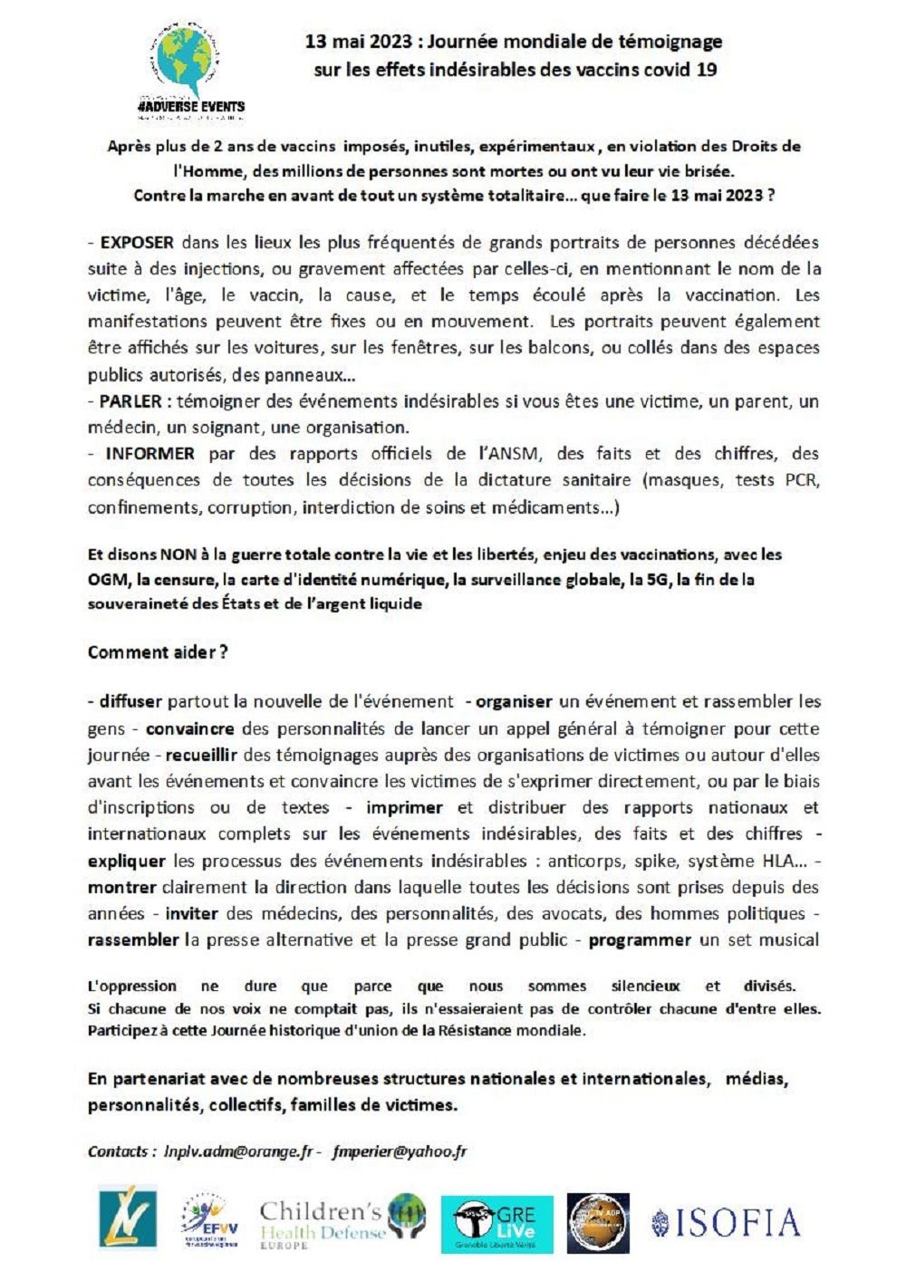Est-ce que vous pouvez nous aider à combattre pour vos libertés et la santé de vos enfants ?