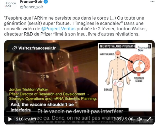 Jordon Walker, directeur R&D de Pfizer a été filmé à son insu, et livre d’étonnantes révélations, notamment sur son étonnement sur le changement sur les cycles mensuels…